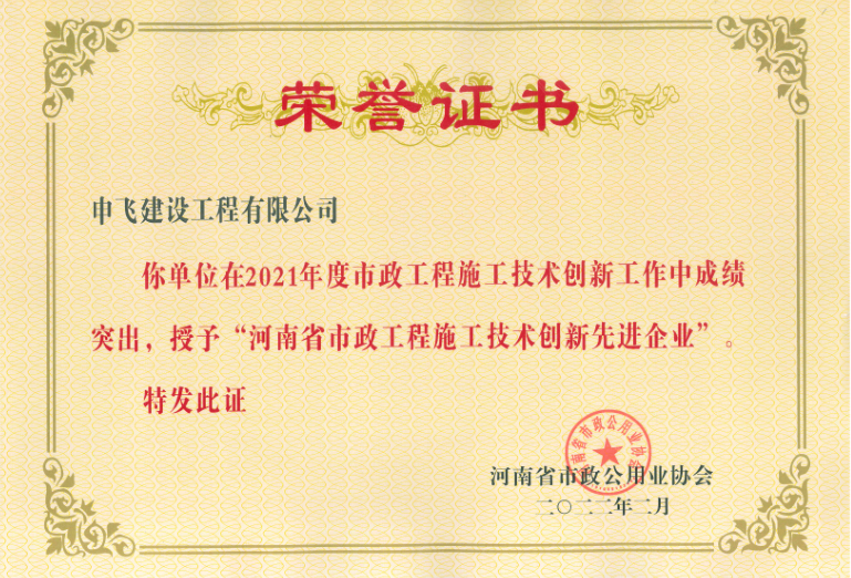 • [04-12]申飛建工再獲“省先進施工企業”、 “市政金杯獎”等多項榮譽